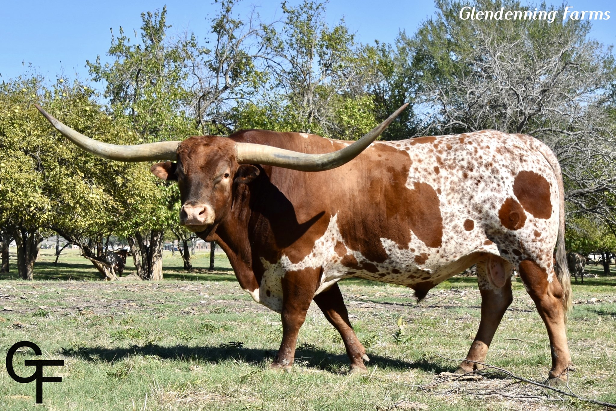 Son of the great 90"TTT Drag Iron and out of the over 85"TTT daughter of JP Rio Grande. He is colorful, has excellent disposition, long, tall, colorful, and built like a tank with perfect conformation. Stacked with the greatest genetics in the breed and will bring the best into any herd.