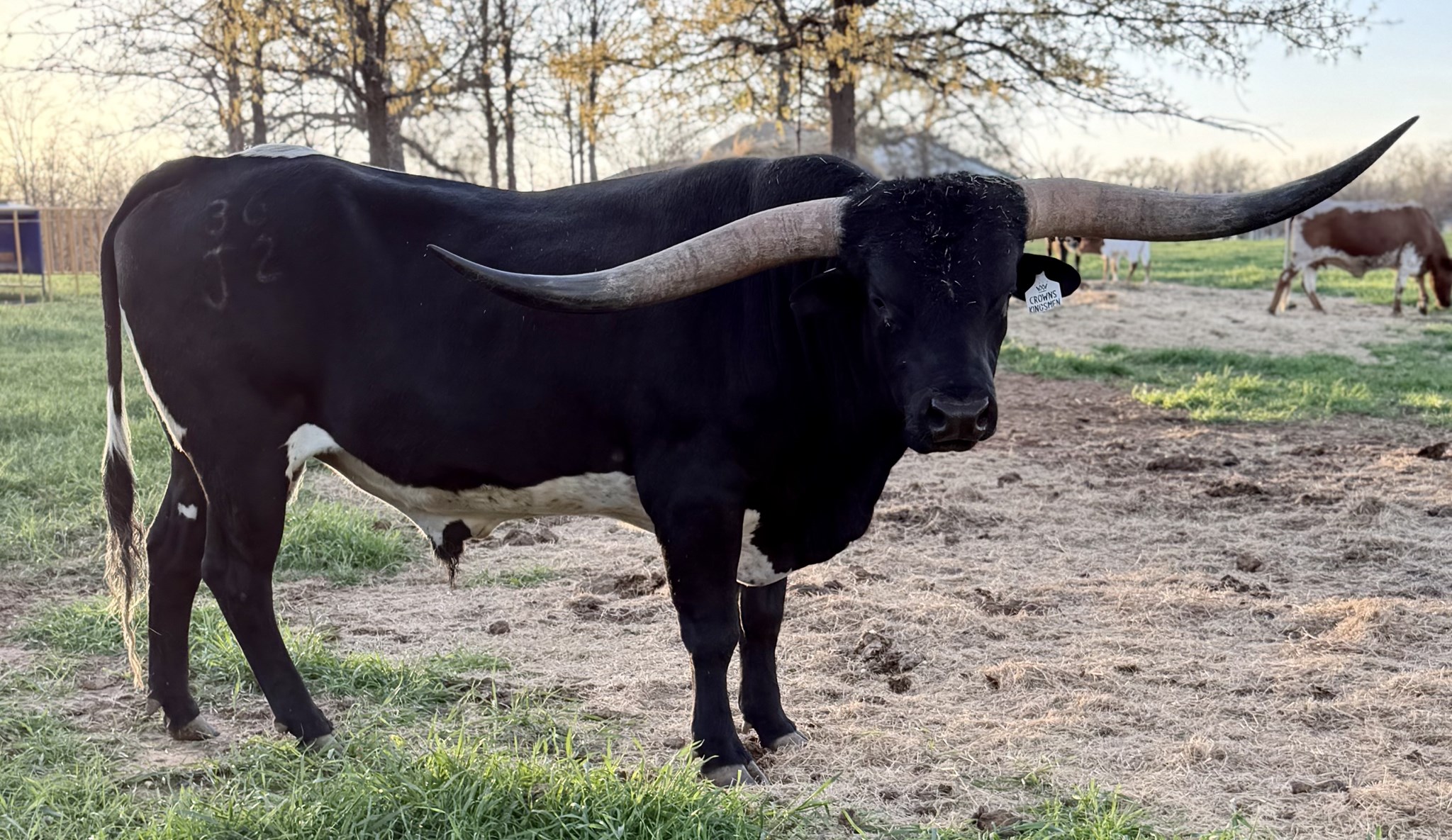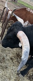 Kingsmen is a specimen of a Bull. He is still young yet incredibly impressive in person. This bull not only has an incredible pedigree, he also has size and a horn set to go with it. We are excited about his future as a premier pure black bull in the industry. Keep your eye on him!!. We have partnered with J & T Longhorns on this great young bull for some outstanding offspring!!