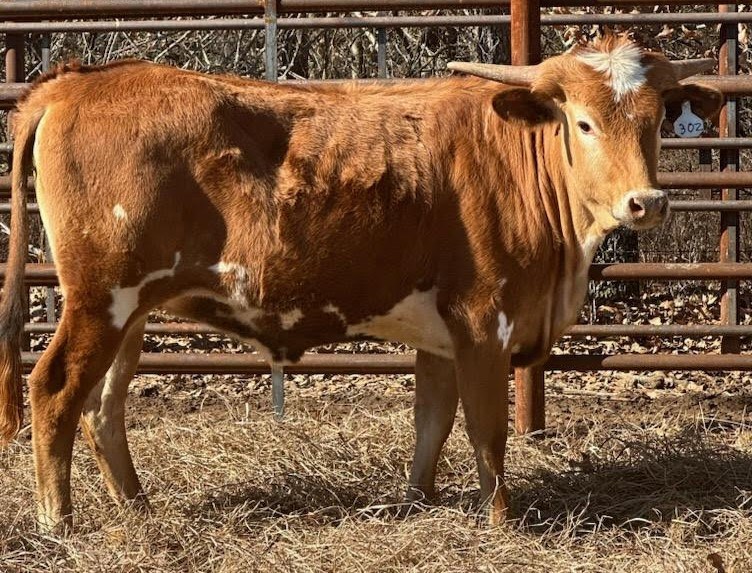 Very excited about this young lady. Horns going straight out and rolling back. Tall and easy going. We ae hoping for great things from this young heifer. DNA - SNP SV