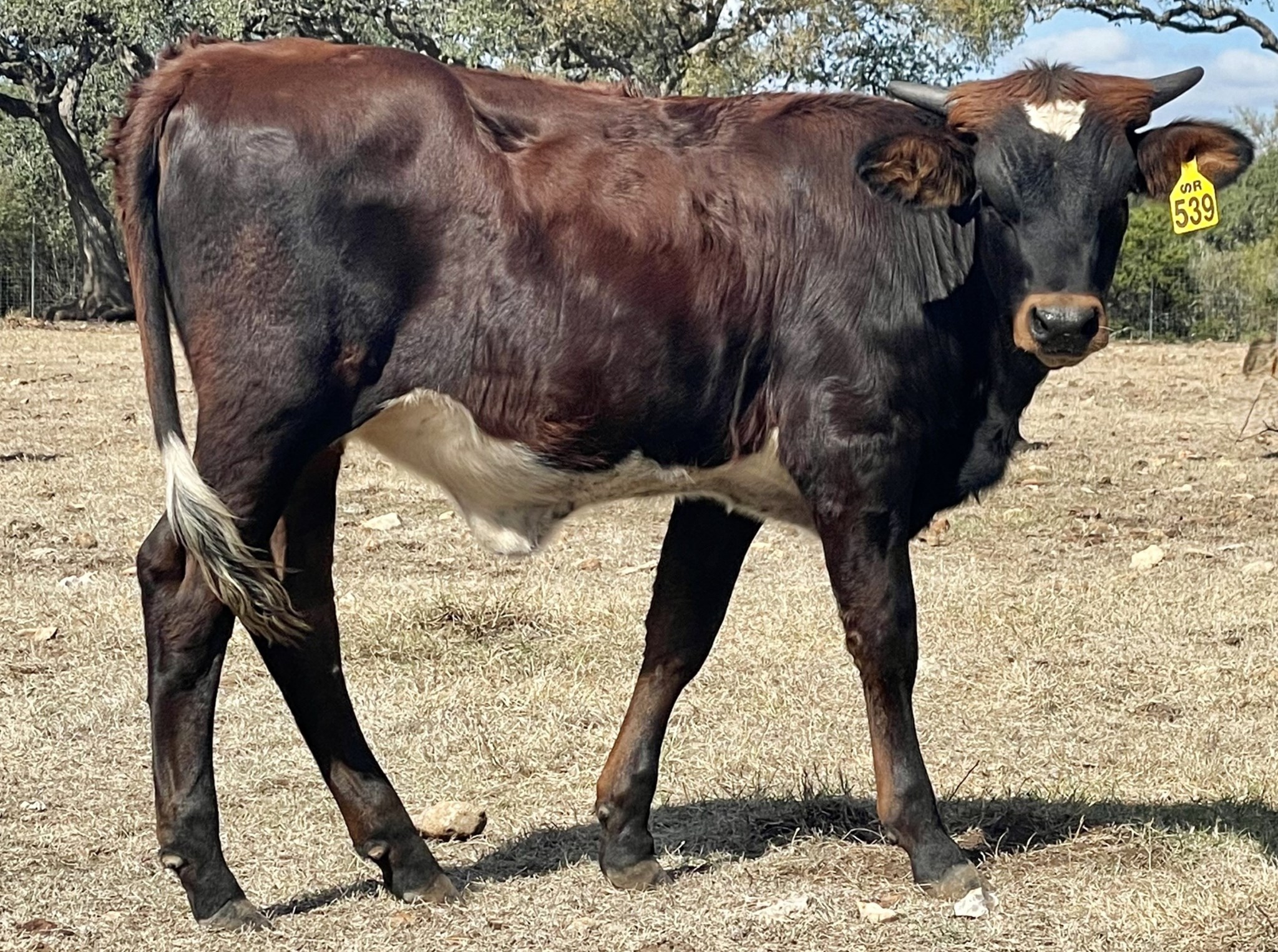 Parker brown with white star, white belly, and white tail switch