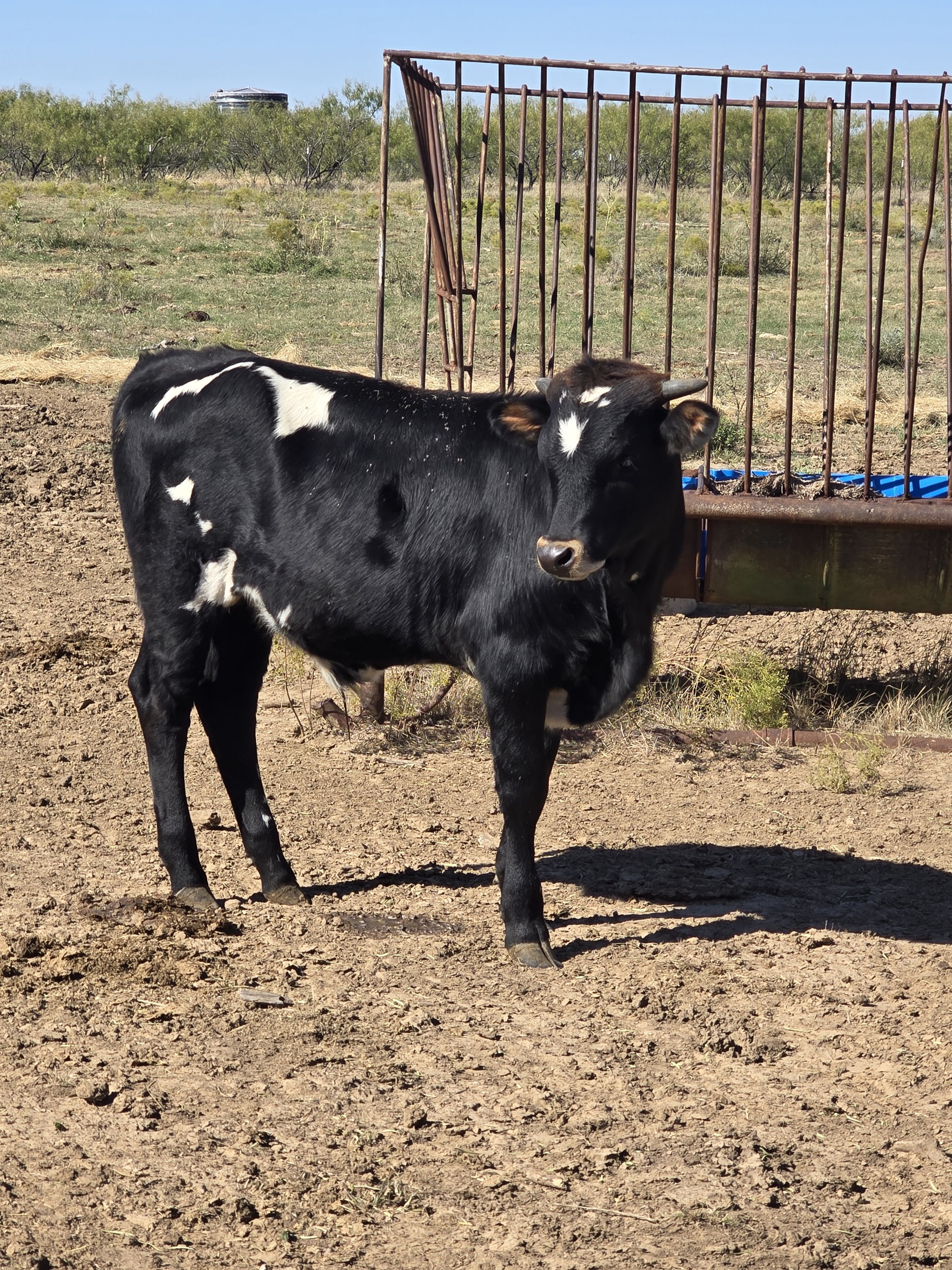 This little bull calf has a great pedigree behind him. He is out of our Hubbells 20 gauge daughter Hubbells Grace the most photogenic cow on our place. Her horns are beautiful. This guy's horns are headed in the right direction and as the potential let's see what he does.
