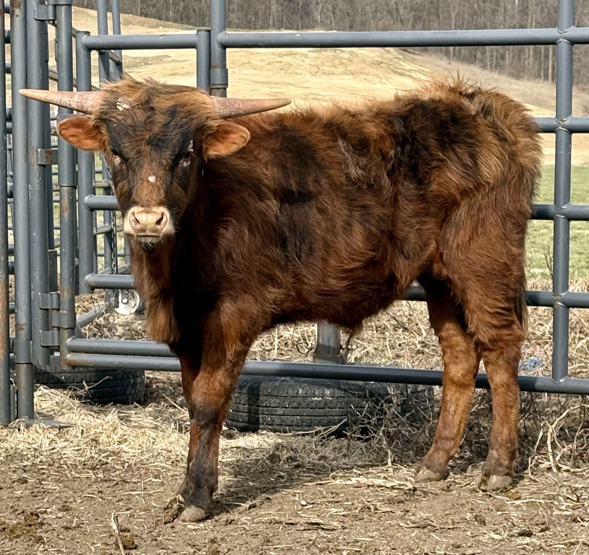 Very nice Heart Breaker son out of a really good producer cow. The Jazz family is one of my favorite families because of the quality son's and daughters! This young bull is very correct, good feet, conformation, color, flat angled back horns and testicular development. he will be ready to go to work on heifers this summer.